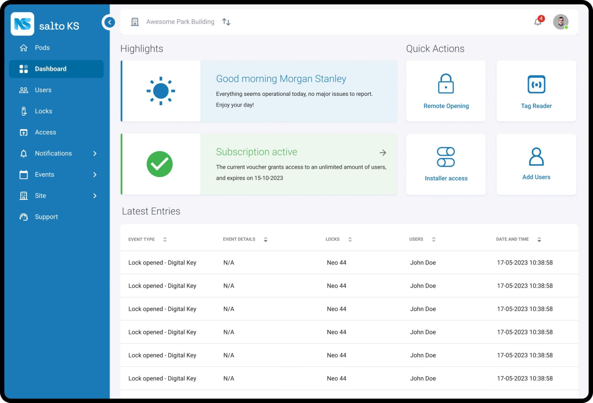 The Salto KS web app eliminates operational challenges and security risks with an intuitive system that meets all of your business’s access control needs.